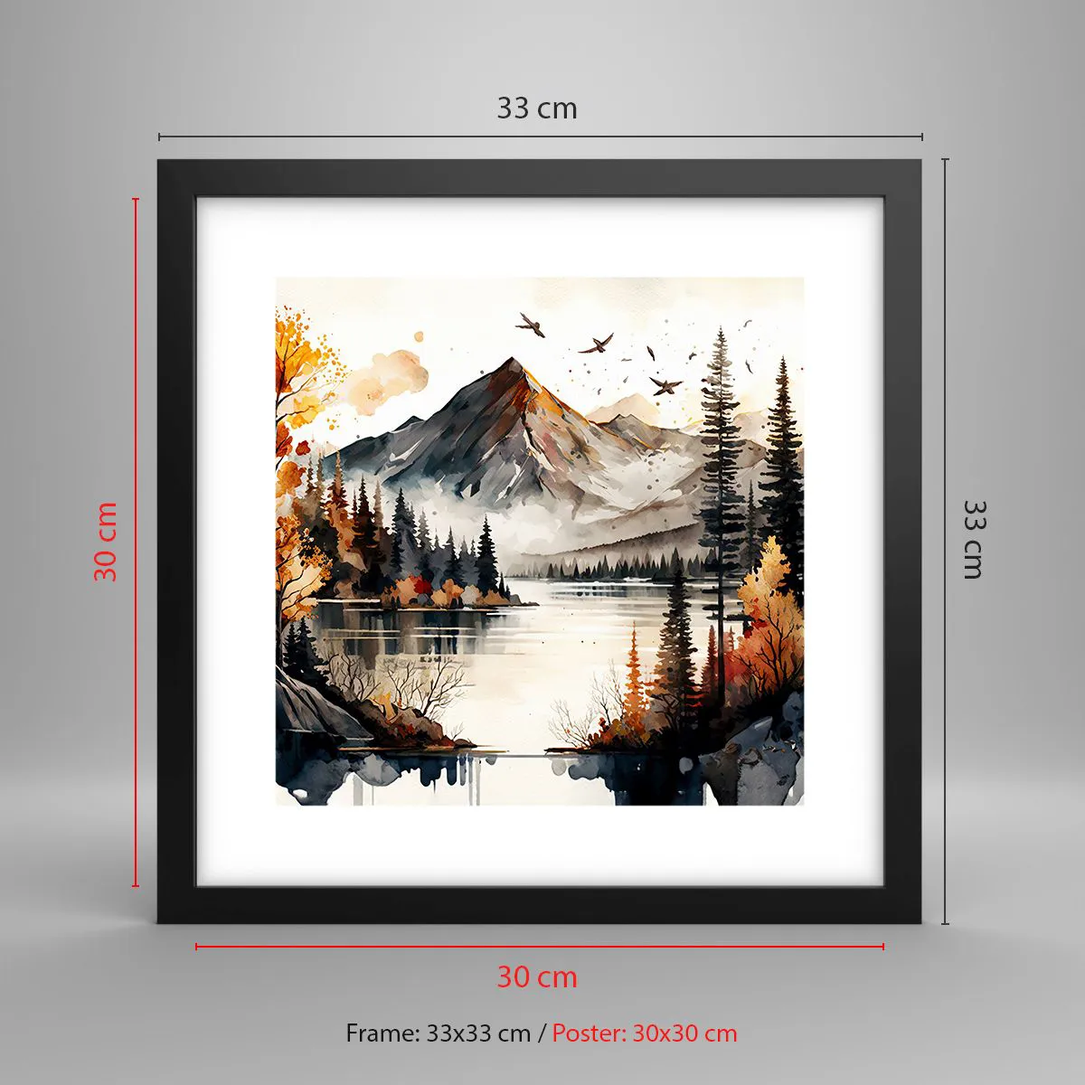 Poster în ramă neagră - Toamna de aur în munți - 30x30 cm
