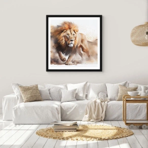 Poster în ramă neagră - Un leu impunător în mișcare într-un stil pictural - 50x70cm - Regele se mișcă - Decorațiune modernă pentru perete pentru living și dormitor ARTTOR
