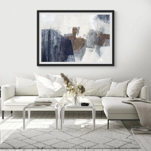 Poster în ramă neagră - Forme albastre-maronii - 70x100 cm