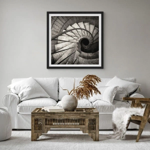 Poster în ramă neagră - Fotografie alb-negru a unei scări în spirală de sus - 50x70cm - În sus și în jos - Decorațiune modernă pentru perete pentru living și dormitor ARTTOR