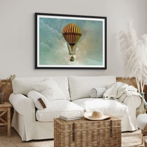 Poster în ramă neagră - Un balon auriu plutind în spațiul cosmic - 50x70cm - Zboruri de pionierat - Decorațiune modernă pentru perete pentru living și dormitor ARTTOR