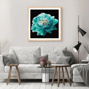 Poster în ramă de stejar deschis - Petale albastre și aurii - 50x70 cm