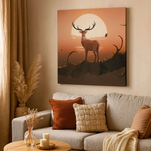 Motivul **cerb** într-un **peisaj** suprarealist nu este doar decorativ, ci și o inspirație care încurajează un moment de pauză și admirație pentru frumusețea naturii. Este o imagine care aduce armonie și expresivitate artistică interiorului.