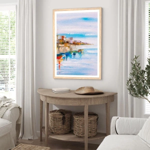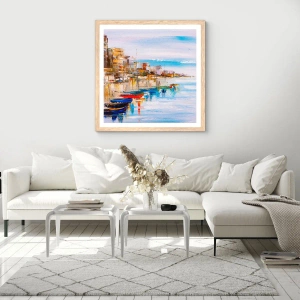 Poster în ramă de stejar deschis - Port urban multicolor - 50x40 cm