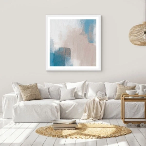 Poster în ramă albă - Abstracție roz în spatele unui voal de albastru - 30x40 cm