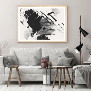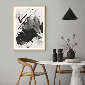 Poster în ramă de stejar deschis - Abstracție - expresie de negru - 50x70 cm