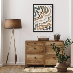 Poster în ramă neagră - Modele organice abstracte în tonuri pământii - 50x70cm - Meandrele culorilor pământului - Decorațiune modernă pentru perete pentru living și dormitor ARTTOR