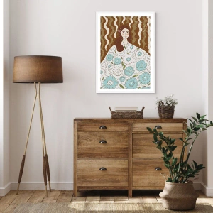 Poster în ramă albă - Portret în rochie înflorată - 70x100 cm
