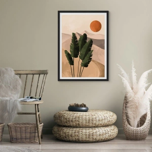 Poster în ramă neagră - Plante într-un decor deșertic cu apusul soarelui, peisaj abstract - 50x70cm - Triumful vieții - Decorațiune modernă pentru perete pentru living și dormitor ARTTOR