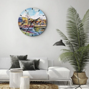 Ceas de perete - Ceas pe sticlă - Curcubeu după-amiază - 40x40 cm