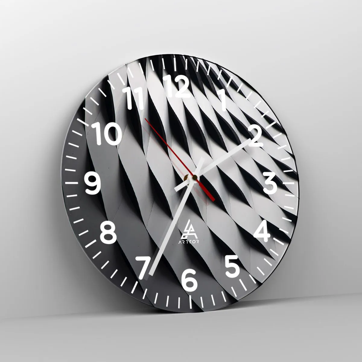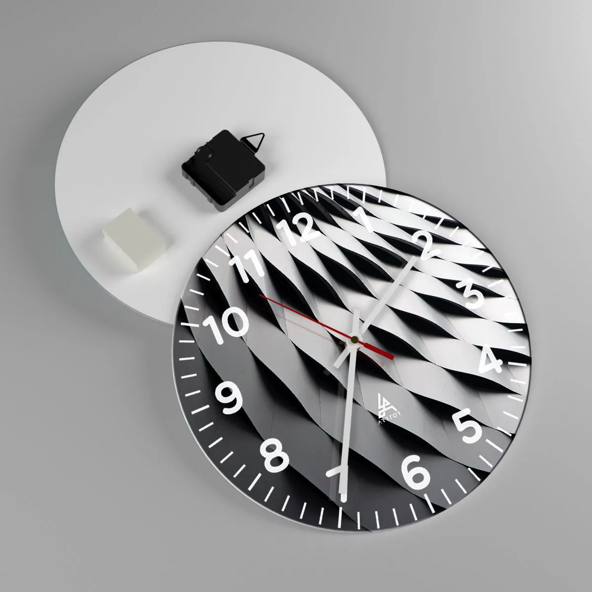 Ceasul este fabricat din sticlă securizată de 4 mm grosime. Tehnologia de fabricație a ceasului respectă clasa de siguranță 2B2 conform EN 12600:2004, care garantează rezistența la impact. Ceasul din sticlă este gata de agățat - are o agățătoare metalică fixată la partea din spate a ceasului și un distanțier din spumă pentru a regla distanța uniformă a ceasului față de perete. Ceasul are un mecanism silențios care funcționează cu ajutorul unei baterii AA de 1,5 V (nu este inclusă).