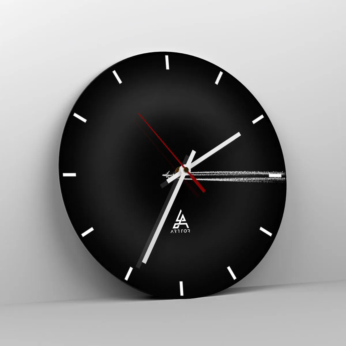 Ceasul pe sticlă este gata de agățat pe perete, este echipat cu un cuier metalic montat pentru o instalare ușoară