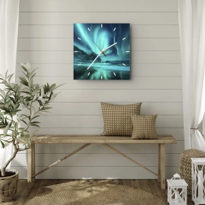Ceas de perete - Ceas pe sticlă - Aurora boreală deasupra coastei muntoase noaptea - 30x30cm - Minunile din nord - Decorațiune modernă pentru perete pentru living, bucătărie și dormitor ARTTOR