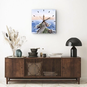 Ceas de perete - Ceas pe sticlă - Un far pe un promontoriu în stil acuarelă - 30x30cm - Cu fața la mare - Decorațiune modernă pentru perete pentru living, bucătărie și dormitor ARTTOR