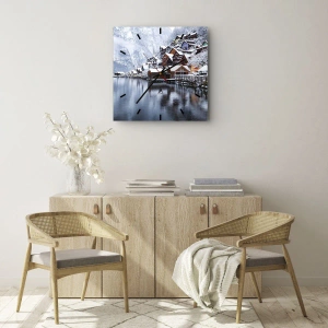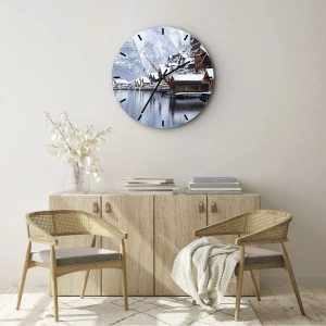 Ceas de perete - Ceas pe sticlă - În decor de iarnă - 40x40 cm