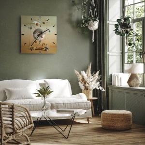 Ceas de perete - Ceas pe sticlă - Compoziție abstractă cu sfere și forme geometrice - 30x30cm - Orice se poate întâmpla - Decorațiune modernă pentru perete pentru living, bucătărie și dormitor ARTTOR