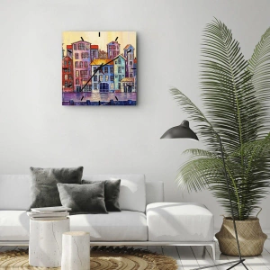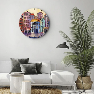 Ceas de perete - Ceas pe sticlă - Un oraș ca în basm - 30x30 cm
