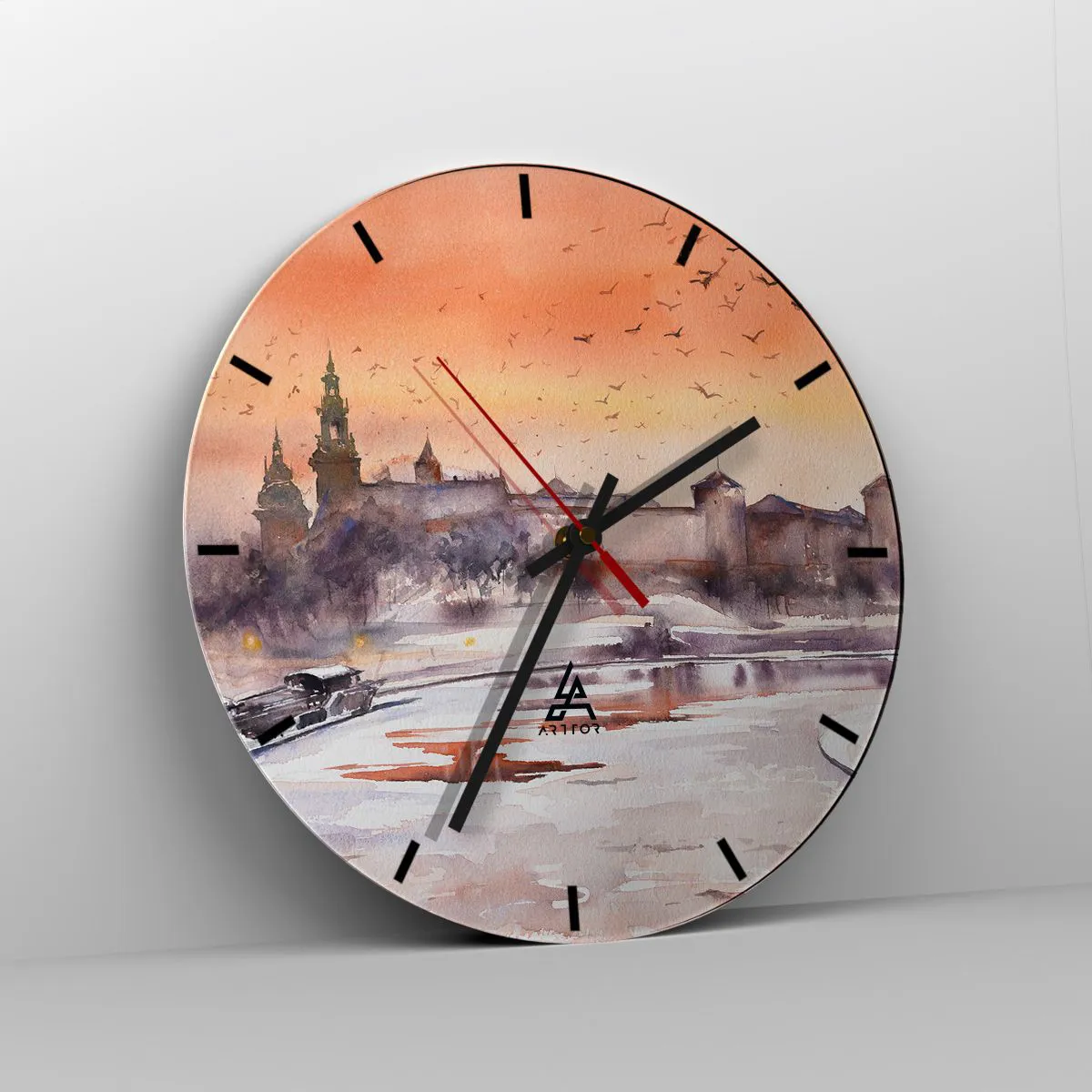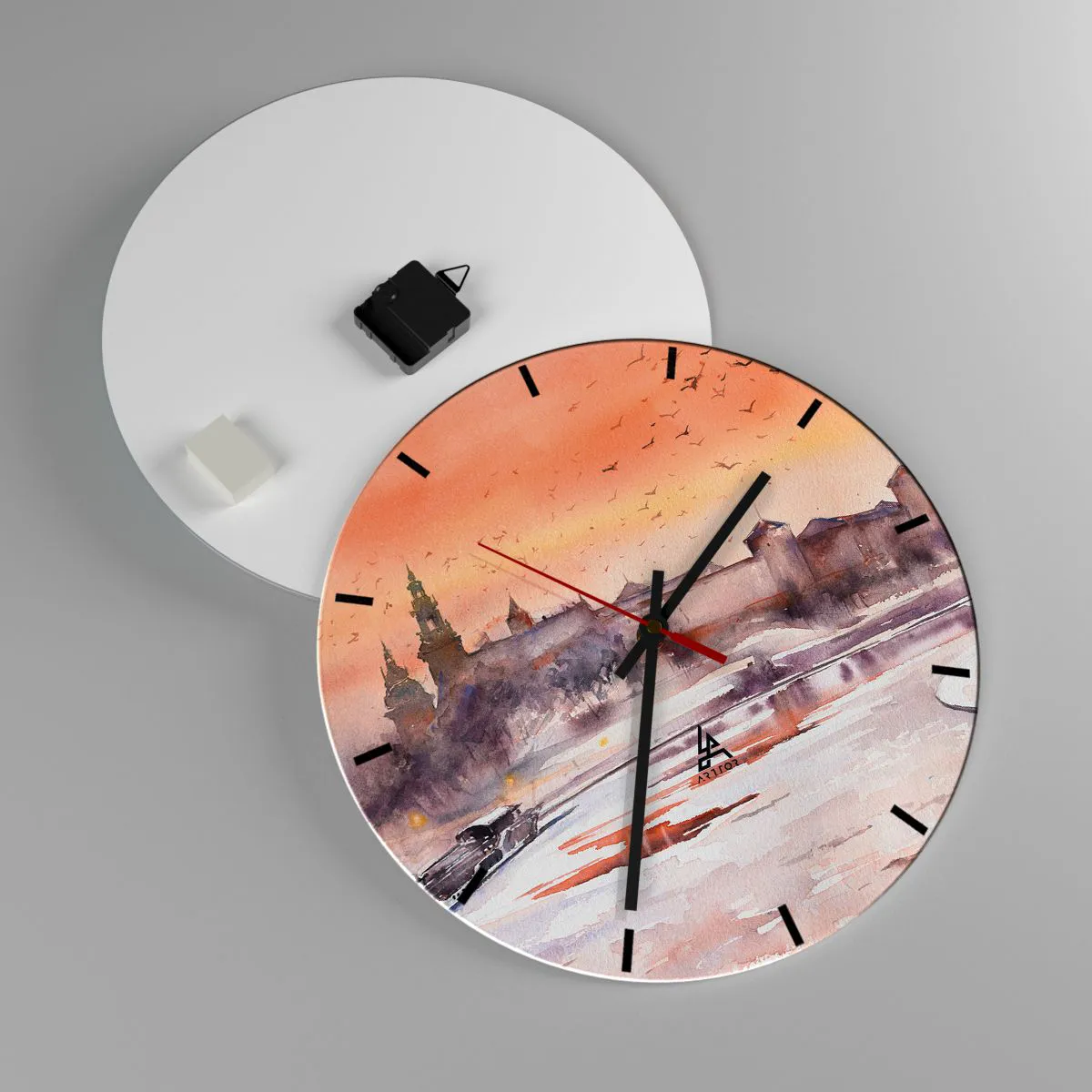 Ceas de perete - Ceas pe sticlă - Apus de soare regal - 40x40 cm