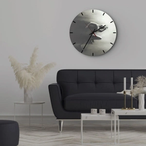 Motivul unei figuri într-o formă complet simplă se potrivește perfect principiilor minimalismului. Jocul de contraste și lumina selectată cu măiestrie conferă ceasului de perete profunzime și expresie emoțională. Nu este doar un obiect utilitar, ci și o decorațiune reflectorizantă care poate servi drept rampă de lansare pentru gândire, inspirație și contemplare.