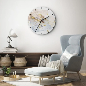Formatul rotund de 30x30 cm face ca ceasul să arate grozav atât pe suprafețe de perete mai mari, cât și pe cele mai mici. Finisajul din sticlă îi sporește estetica și îi conferă strălucire, asigurând în același timp o curățare ușoară. Marcajele orare negre adaugă claritate și facilitează citirea orei.