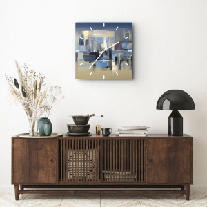 Ceas de perete - Ceas pe sticlă - Construcție albastră - 40x40 cm