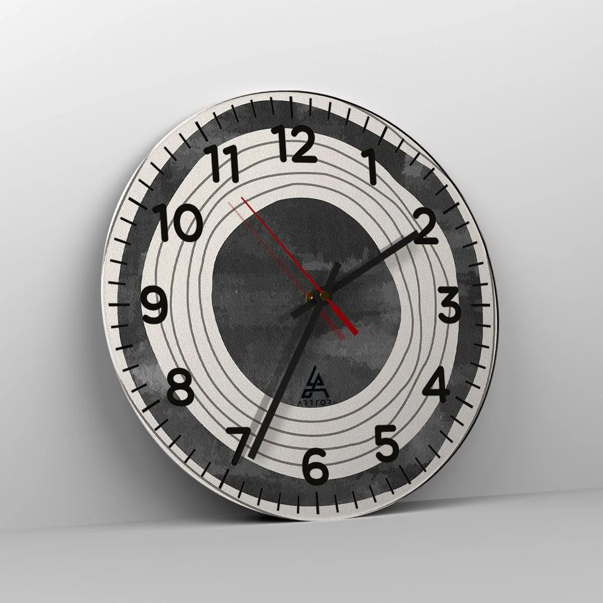 Ceasul pe sticlă este gata de agățat pe perete, este echipat cu un cuier metalic montat pentru o instalare ușoară