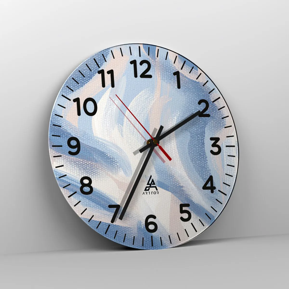 Ceas de perete - Ceas pe sticlă - Undele albastre - 30x30 cm