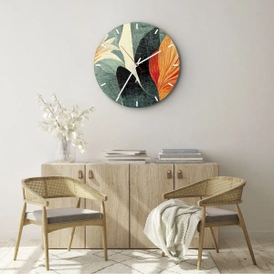 Ceas de perete - Ceas pe sticlă - Căldura de la tropice și răcoarea verdeței - 40x40 cm