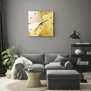 Ceas de perete - Ceas pe sticlă - Forme geometrice aurii într-o compoziție modernă - 30x30cm - Vremea de geometrie - Decorațiune modernă pentru perete pentru living, bucătărie și dormitor ARTTOR