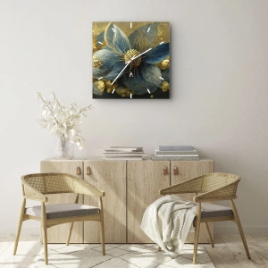 Ceas de perete - Ceas pe sticlă - Floare cu aur - 40x40 cm