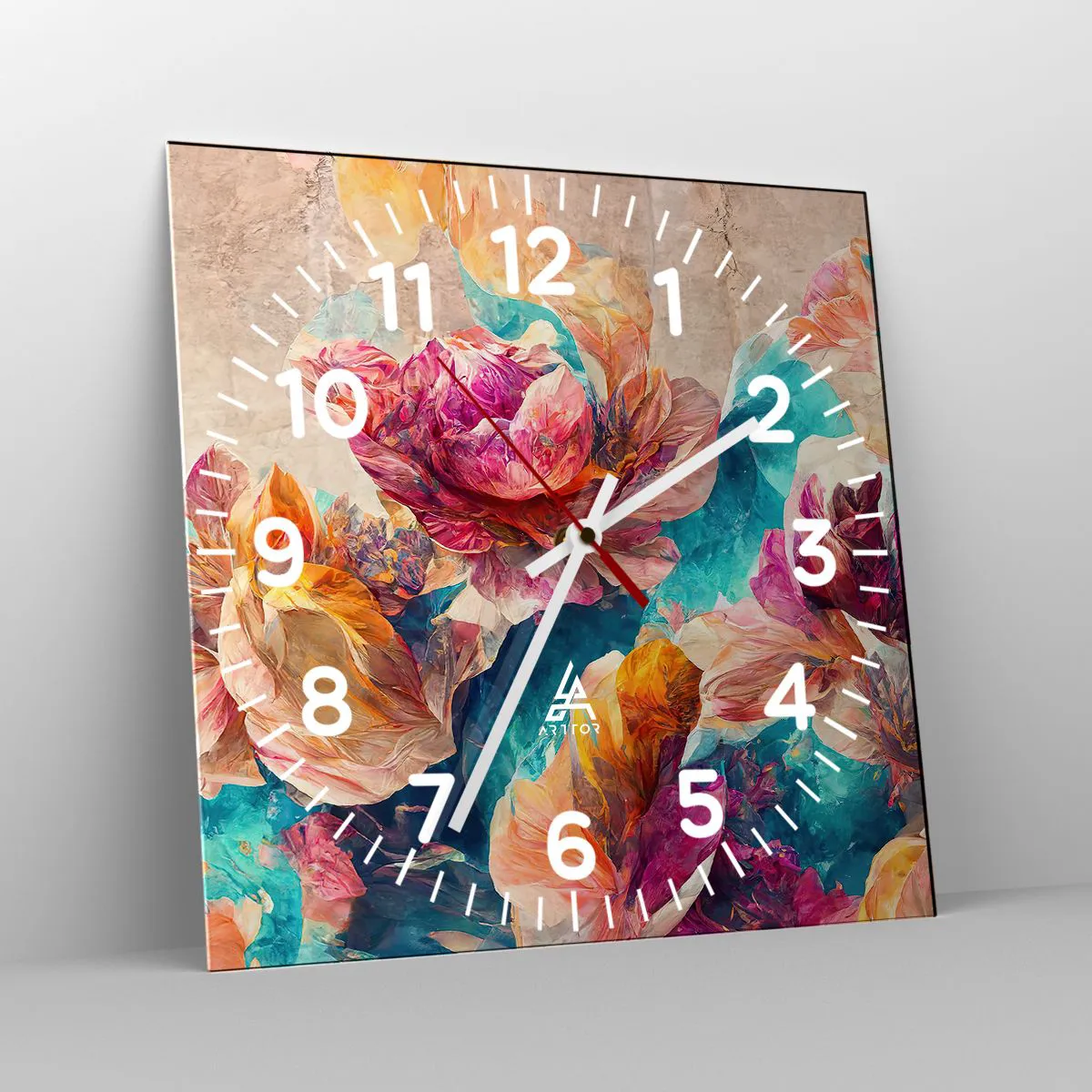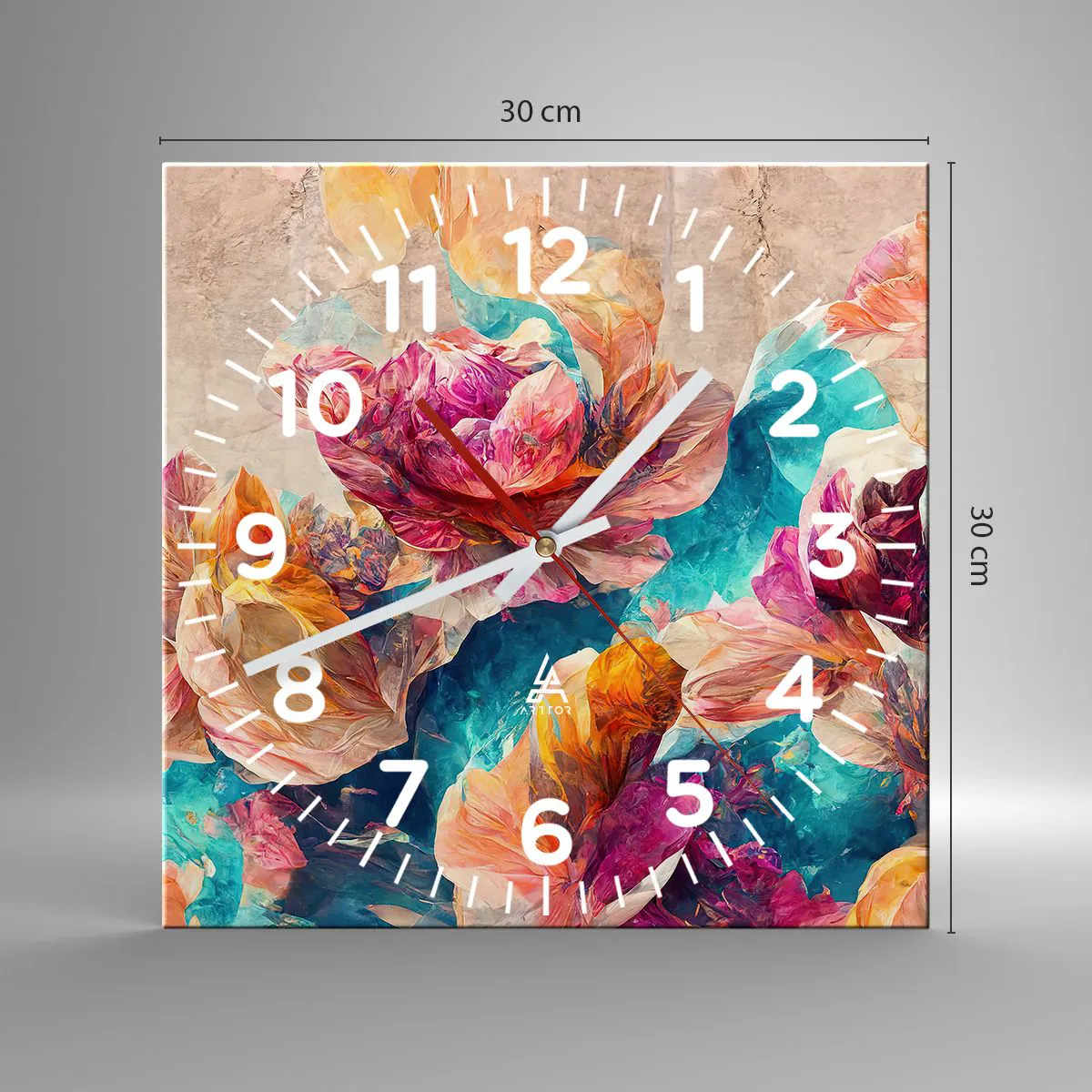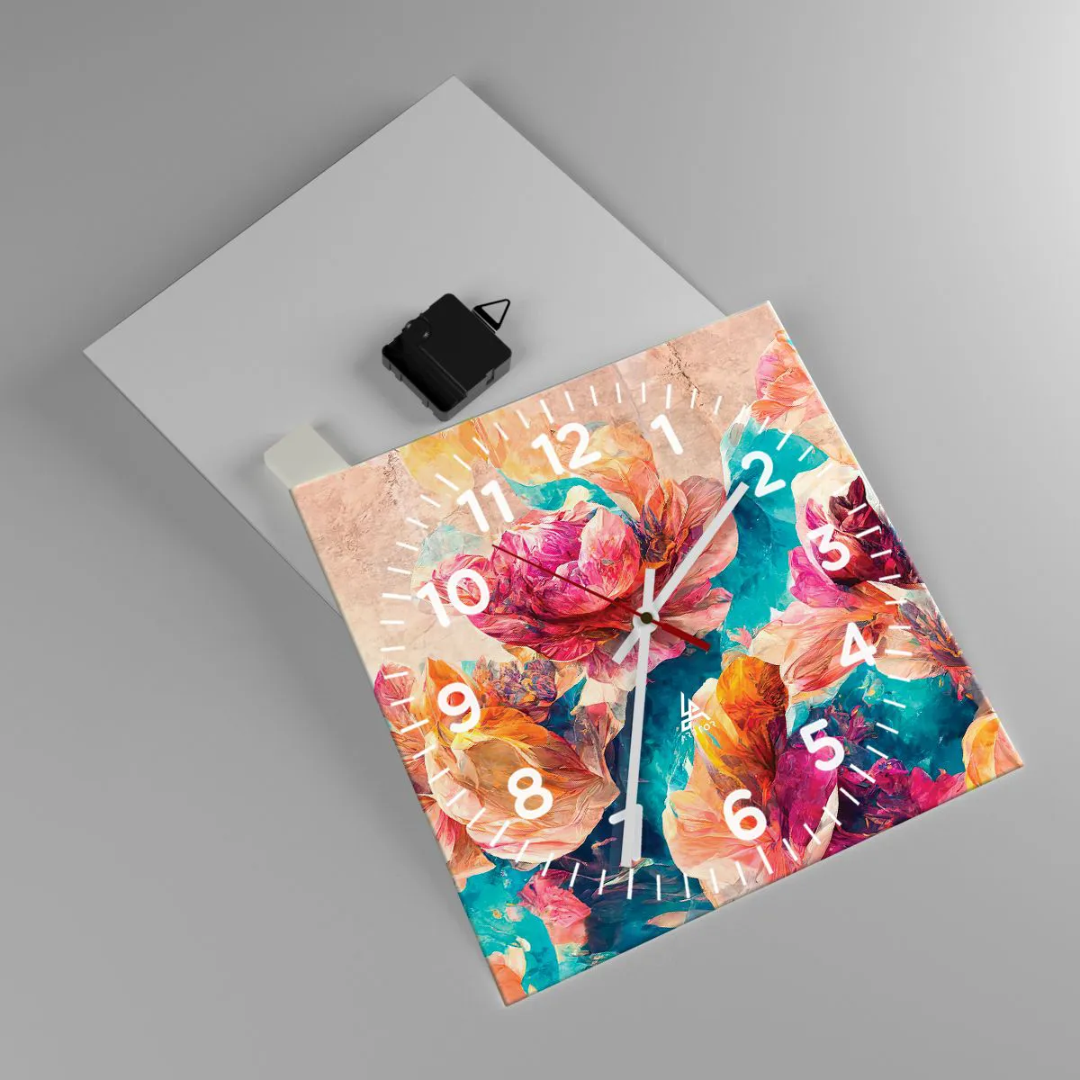 Ceas de perete - Ceas pe sticlă - Splendoarea colorată a buchetului de flori - 30x30 cm