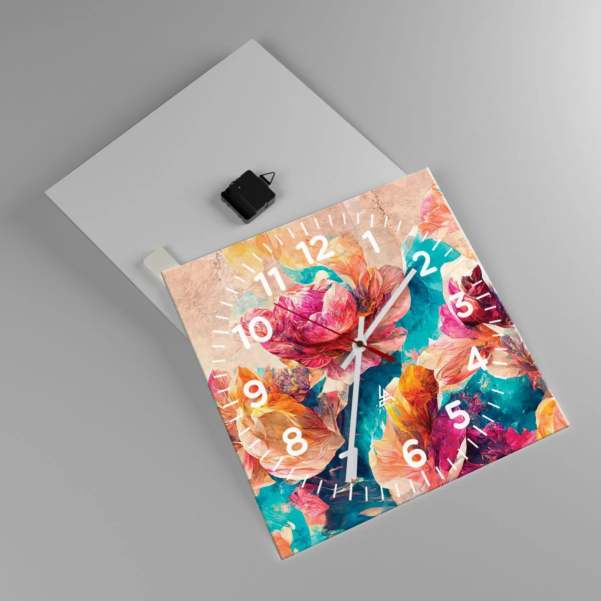 Ceas de perete - Ceas pe sticlă - Splendoarea colorată a buchetului de flori - 40x40 cm