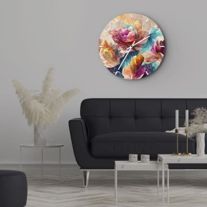Ceas de perete - Ceas pe sticlă - Splendoarea colorată a buchetului de flori - 30x30 cm