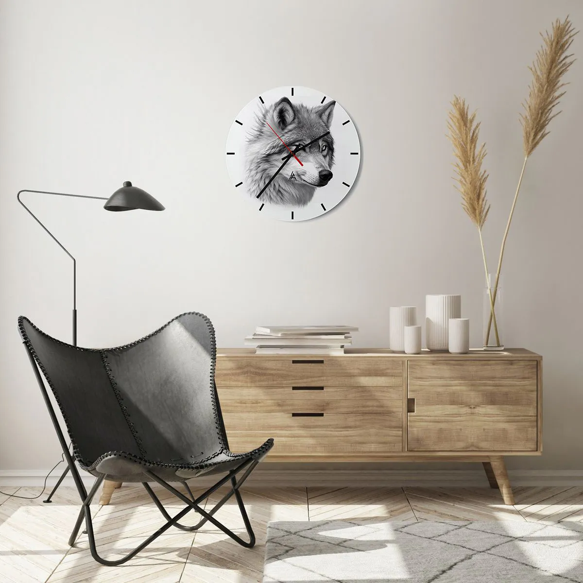 Ceasul pe sticlă este gata de agățat pe perete, este echipat cu un cuier metalic montat pentru o instalare ușoară