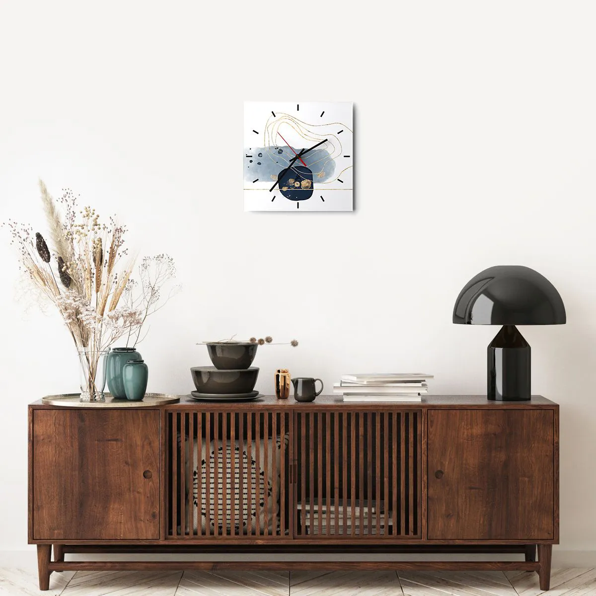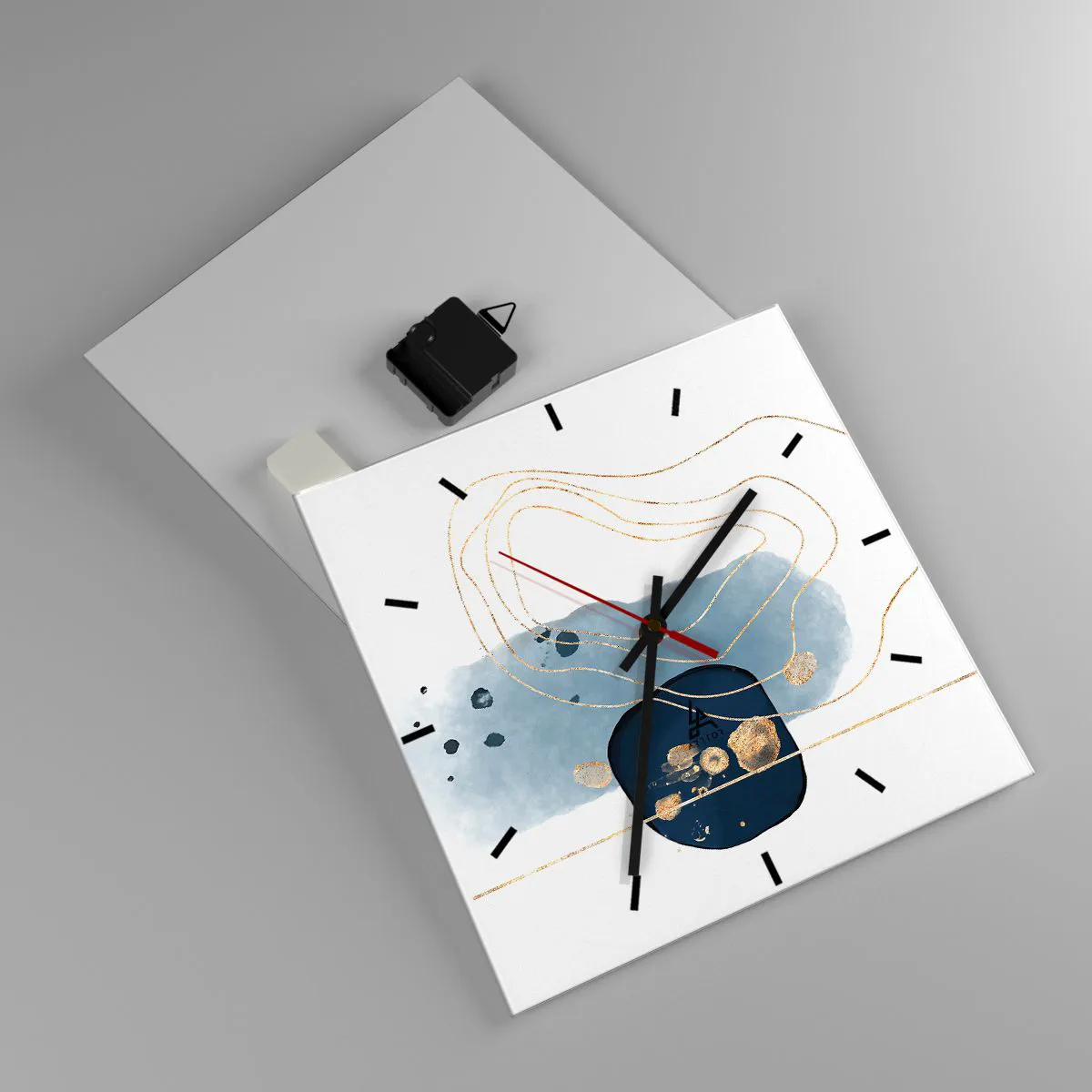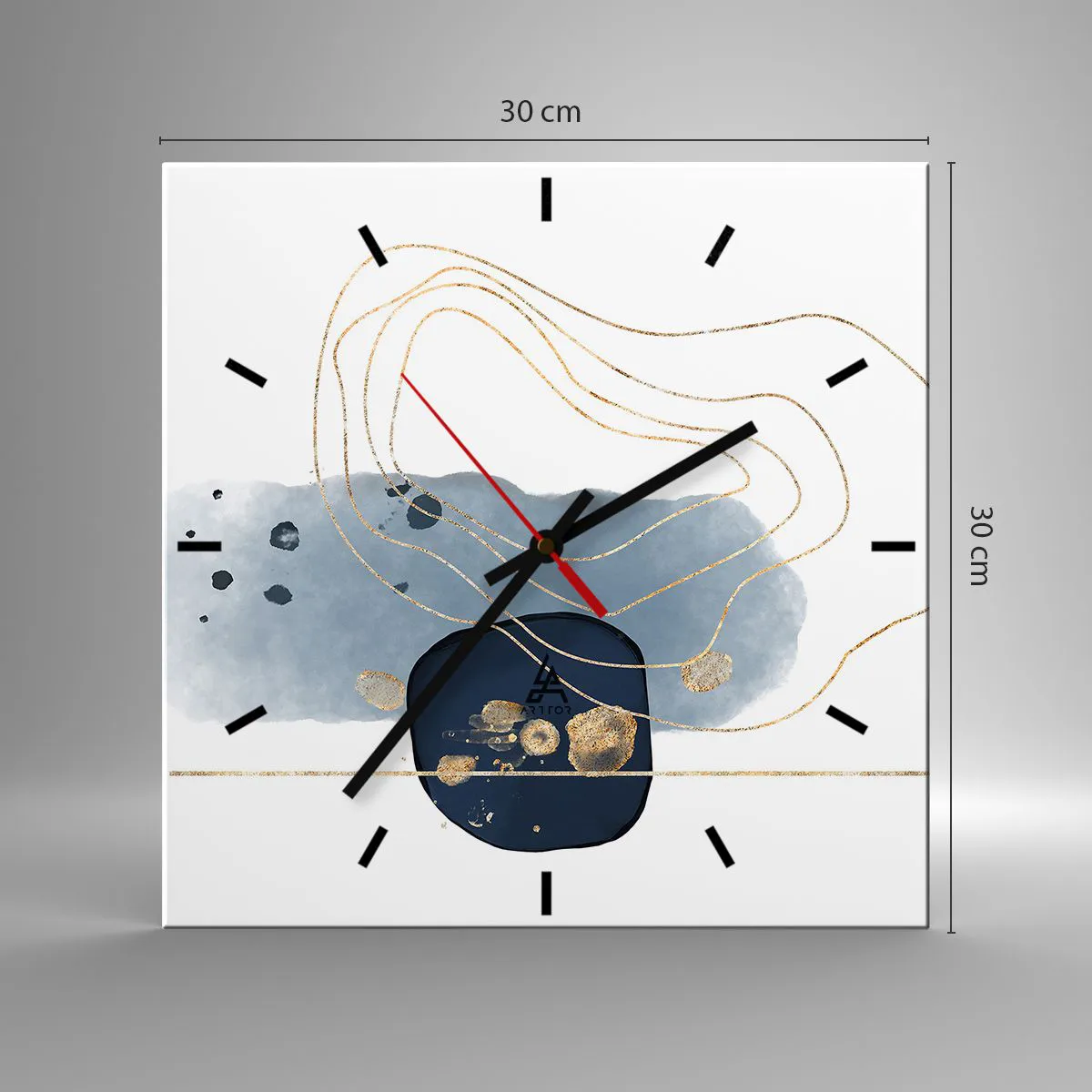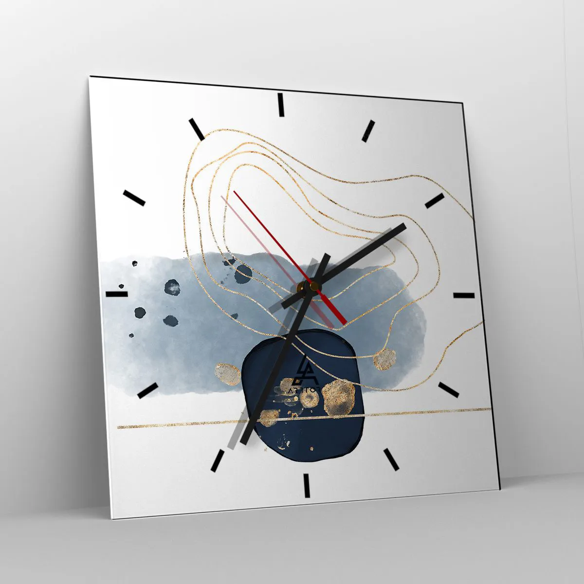 Ceas de perete - Ceas pe sticlă - Fantezie albastru-auriu - 30x30 cm