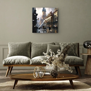 Ceas de perete - Ceas pe sticlă - Plimbare de seară prin centrul istoric al orașului - 30x30cm - Magia unei seri la Praga - Decorațiune modernă pentru perete pentru living, bucătărie și dormitor ARTTOR