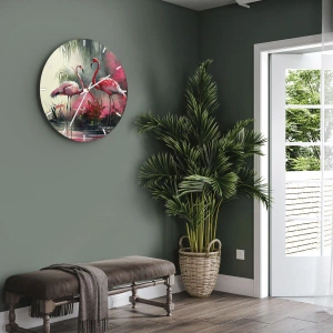 • Flamingo, artă, peisaj, Artă, Animale, Pentru birou, Pentru birou, Pentru sufragerie, Pentru hol, Pentru living, Pentru dormitor, Alb, Roz, Gri, Rundă