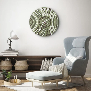 Ceas de perete - Explozie de emoții - Compoziție simetrică verde și maro cu modele concentrice