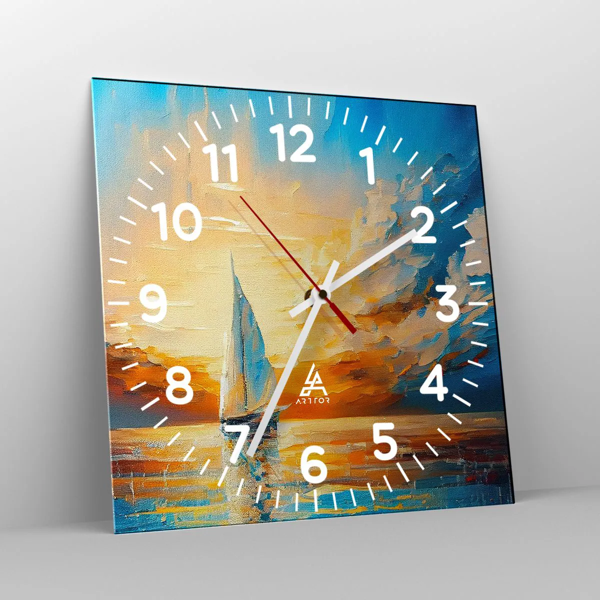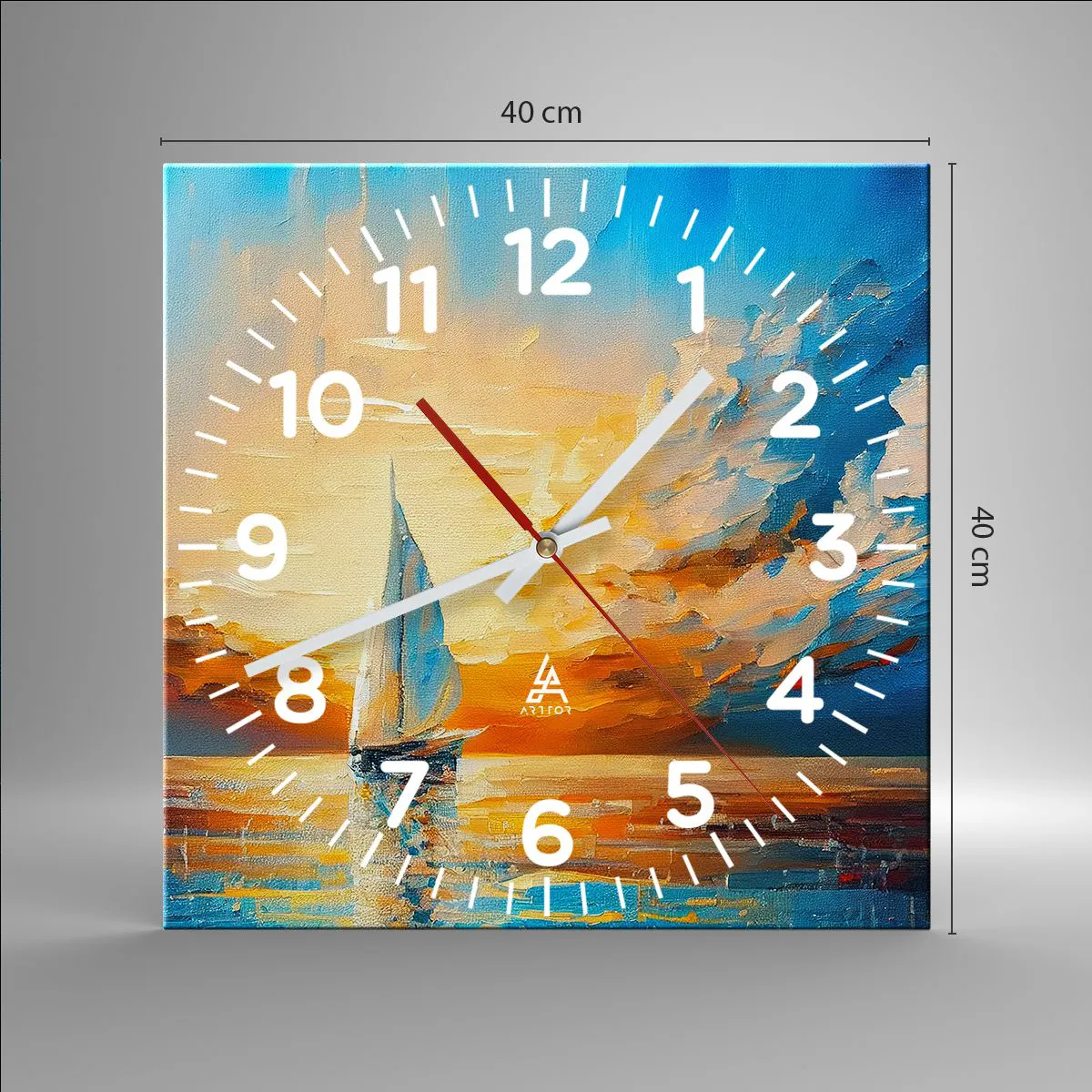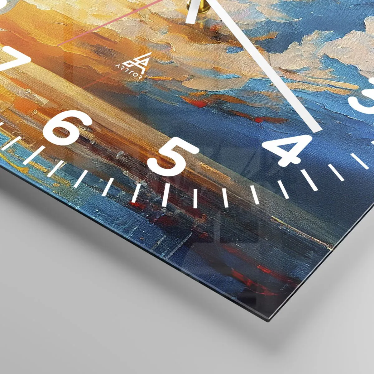 Ceas de perete - Ceas pe sticlă - Navigare prin aur - 40x40 cm