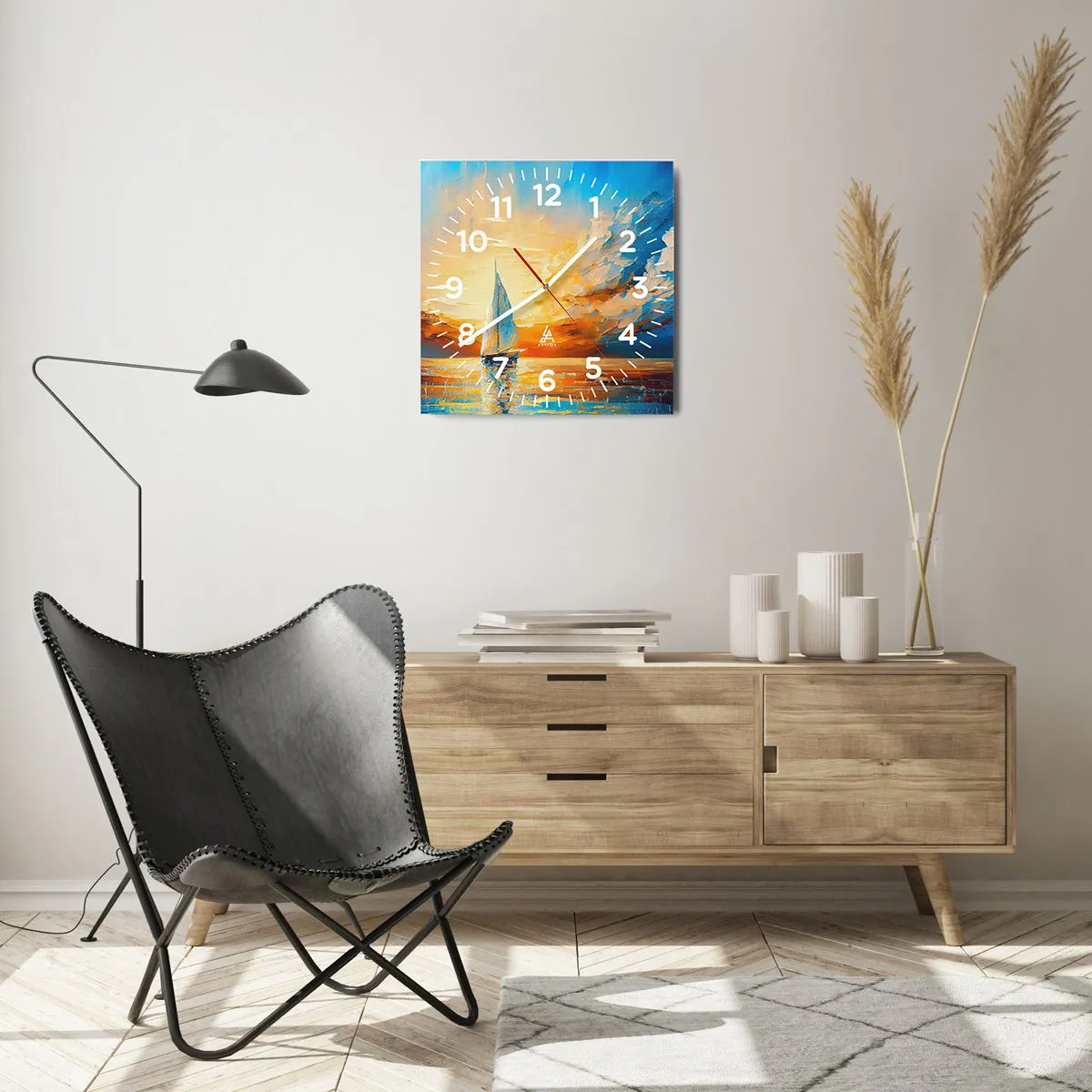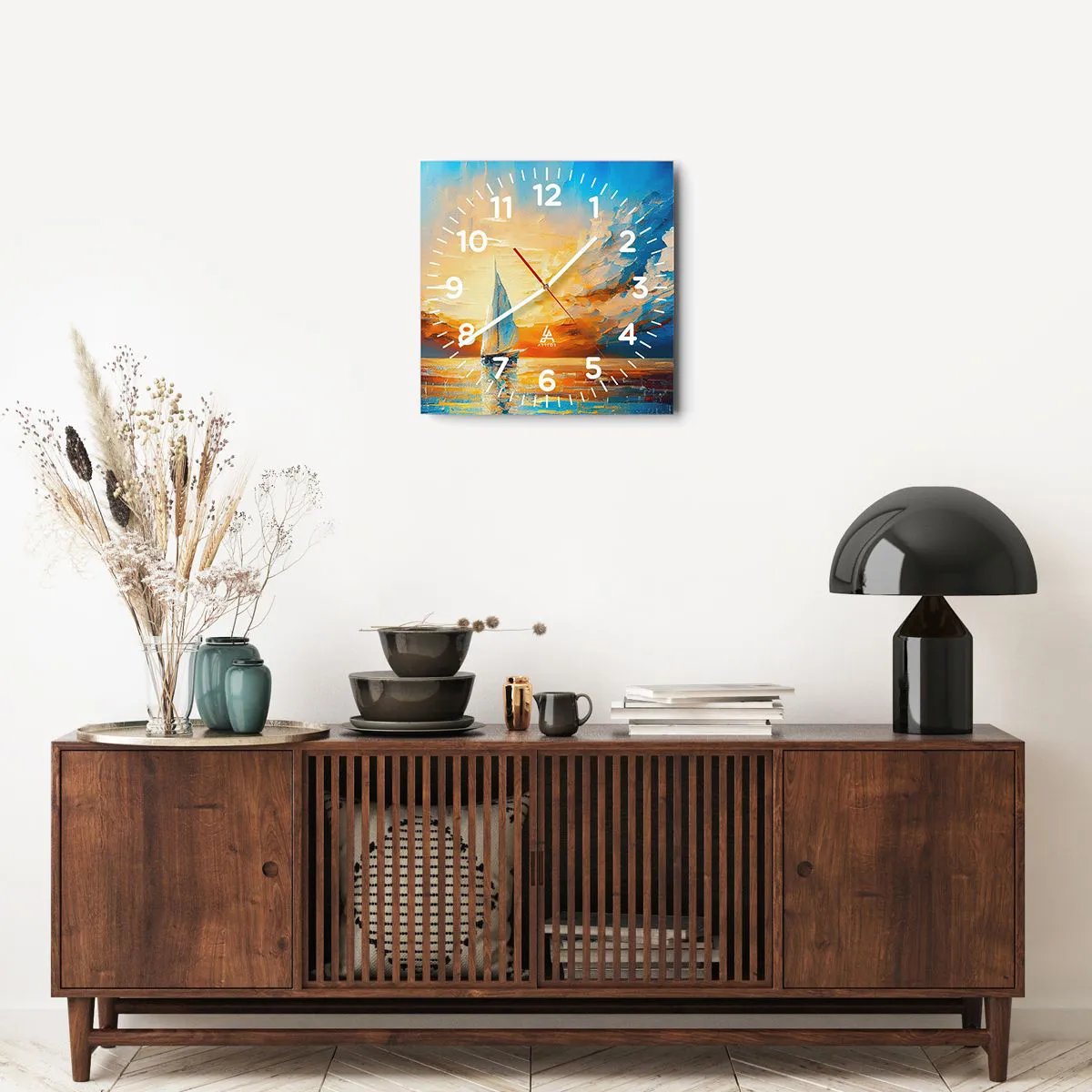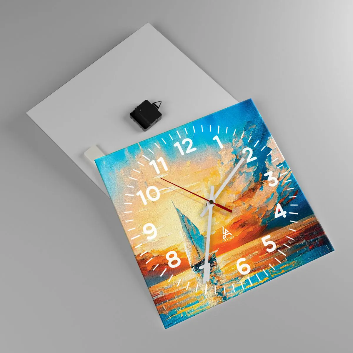Ceas de perete - Ceas pe sticlă - Navigare prin aur - 40x40 cm