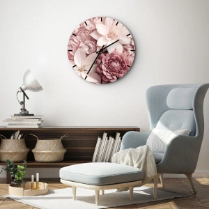 Ceas de perete - Ceas pe sticlă - În petale roz - 30x30 cm