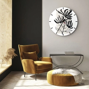 Ceas de perete - Ceas pe sticlă - Schiță pentru ierbar - 30x30 cm