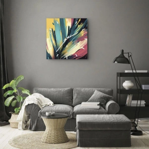 Ceas de perete - Ceas pe sticlă - Compoziția - o explozie de bucurie - 40x40 cm