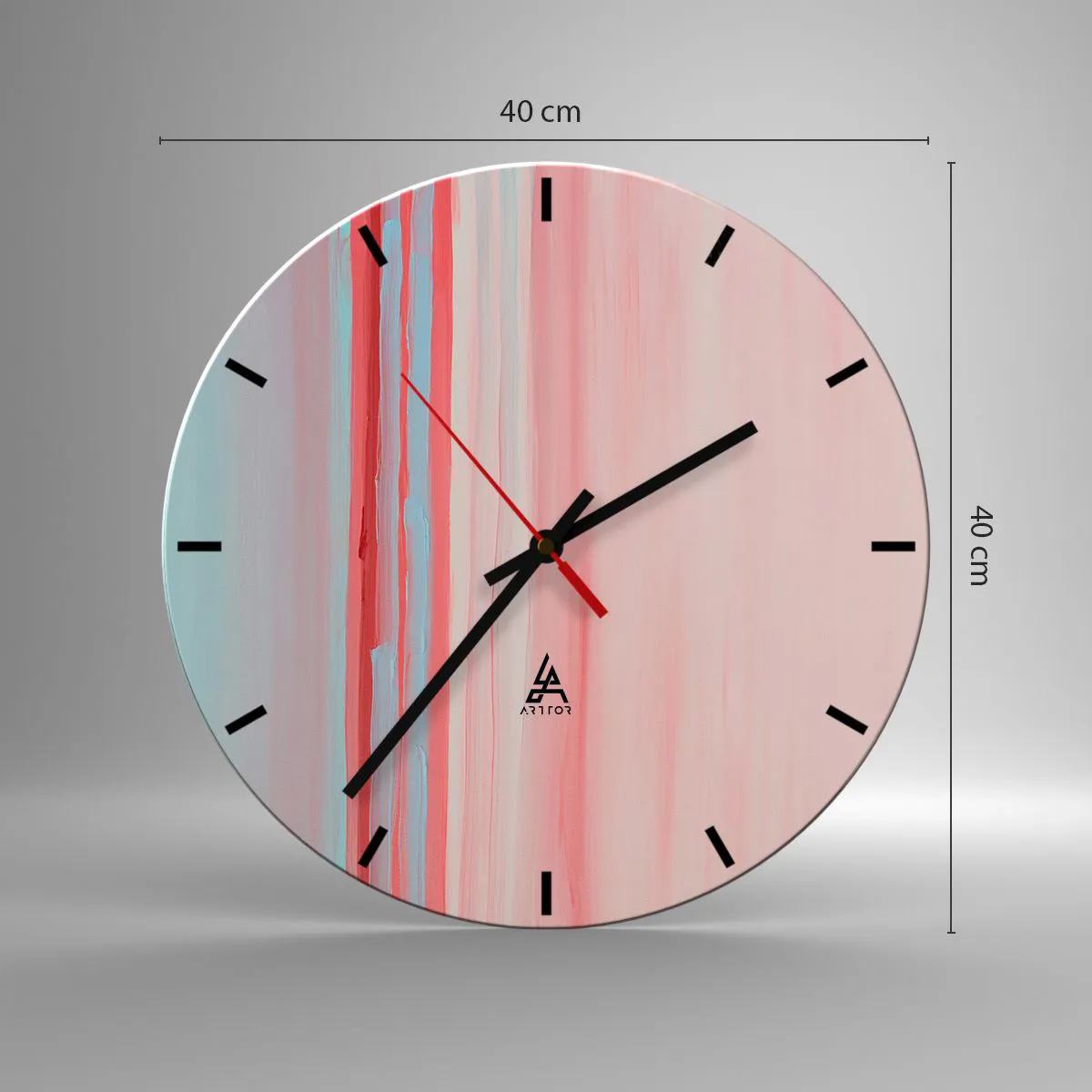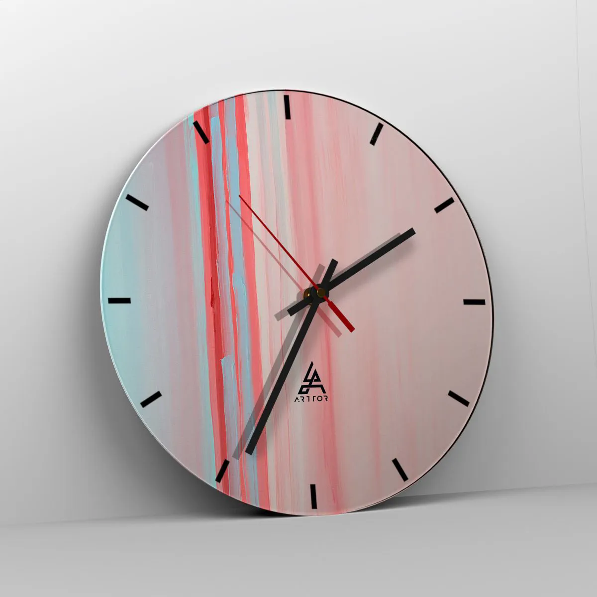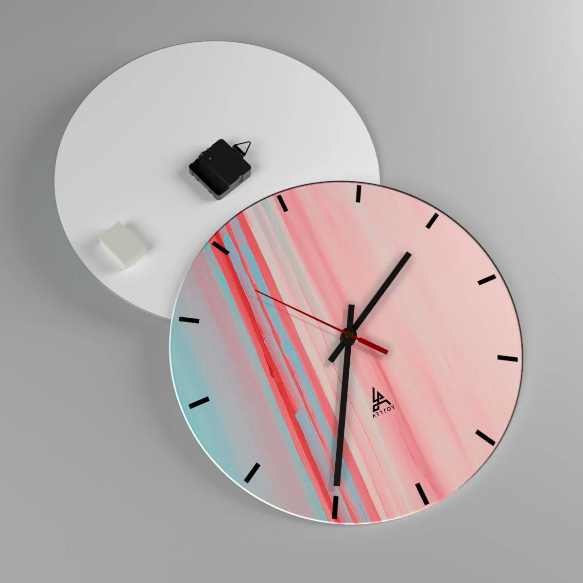 Ceasul este fabricat din sticlă securizată de 4 mm grosime. Tehnologia de fabricație a ceasului respectă clasa de siguranță 2B2 conform EN 12600:2004, care garantează rezistența la impact. Ceasul din sticlă este gata de agățat - are o agățătoare metalică fixată la partea din spate a ceasului și un distanțier din spumă pentru a regla distanța uniformă a ceasului față de perete. Ceasul are un mecanism silențios care funcționează cu ajutorul unei baterii AA de 1,5 V (nu este inclusă).
