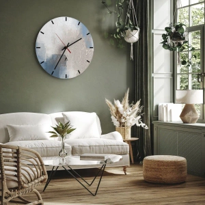 Ceas de perete - Ceas pe sticlă - Abstracție roz în spatele unui voal de albastru - 30x30 cm