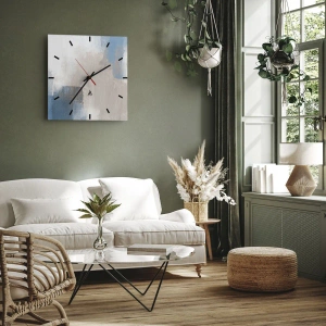 Ceas de perete - Ceas pe sticlă - Abstracție roz în spatele unui voal de albastru - 40x40 cm