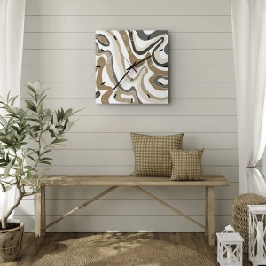 Ceas de perete - Ceas pe sticlă - Dungi șerpuitoare în tonuri de pământ pe un fundal alb - 30x30cm - Meandrele culorilor pământului - Decorațiune modernă pentru perete pentru living, bucătărie și dormitor ARTTOR