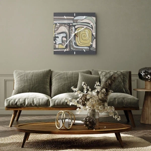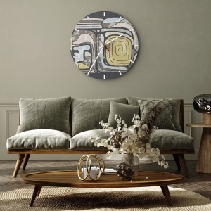 Ceas de perete - Ceas pe sticlă - Abstracție în spirit precolumbian - 30x30 cm