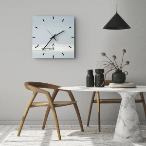 Ceas de perete - Ceas pe sticlă - O siluetă singură stă pe o bancă într-un peisaj de iarnă. - 30x30cm - Da, aștept. - Decorațiune modernă pentru perete pentru living, bucătărie și dormitor ARTTOR