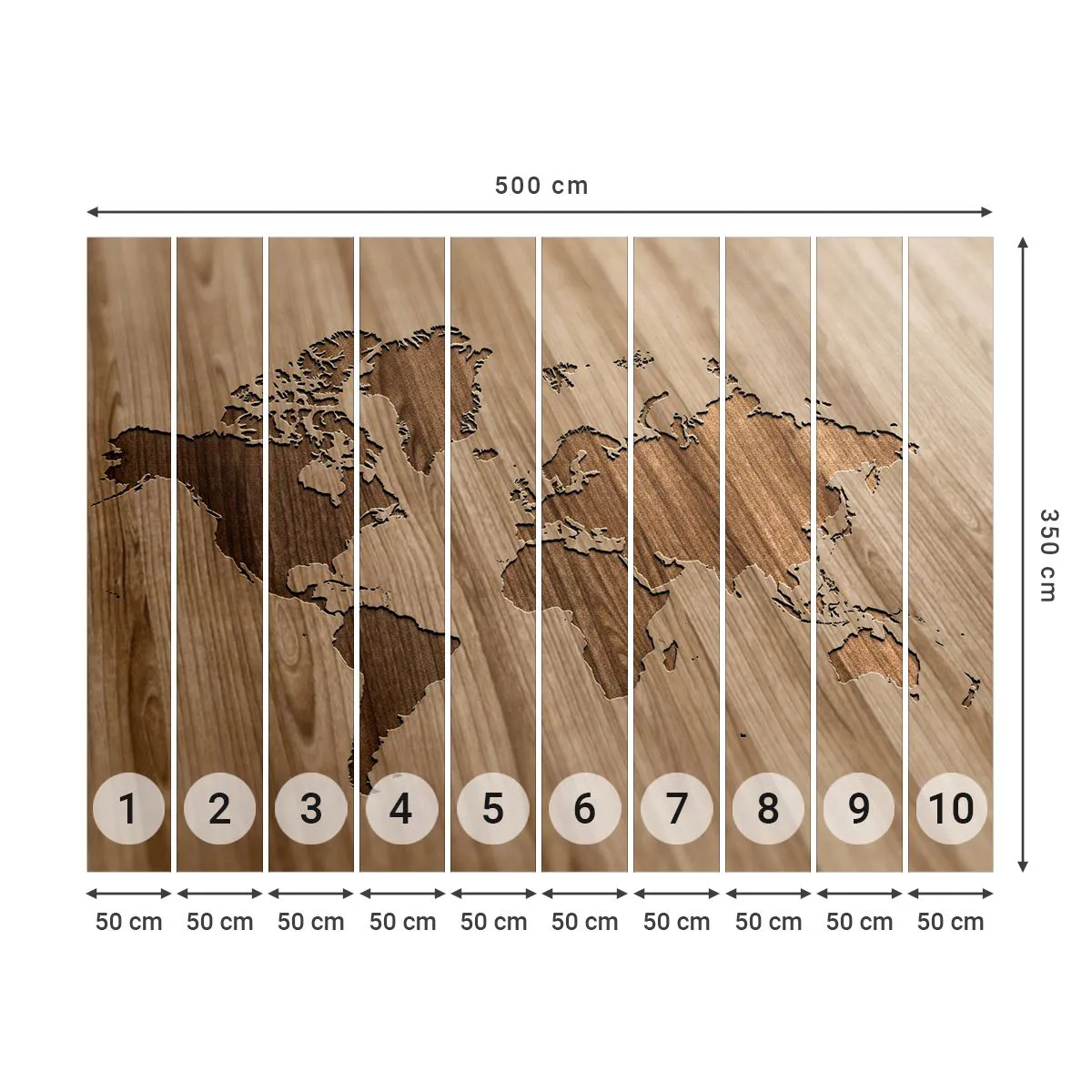 Tapet Standard Eco - Lumea servită pe masă - Harta lumii, Lemn, Continente - 500x350 cm